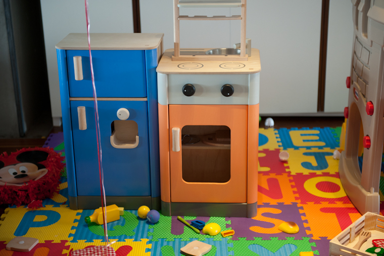 You got lots of toys, of course. And some snappy new clothes. You have a new little kitchen with all sorts of things to go in it and lots of fire truck-related items. Aunt Amy and Susan even brought you a fire truck cake!